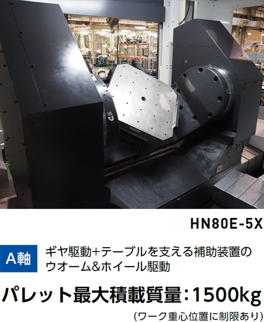 クラス最大級の加工容量により、幅広いサイズのワークの5軸加工に対応します。